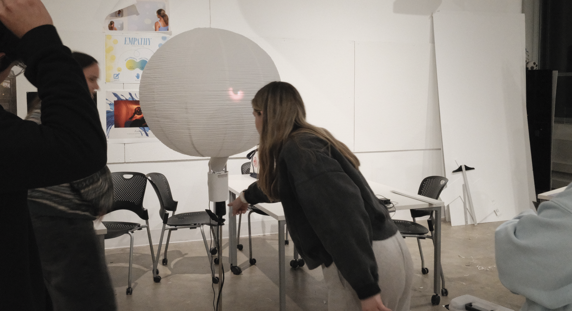Our group liked the idea of an interactive orb that would change states based on the users proximity. We began our brainstorming session by thinking of the tech limits we had as a group, while also thinking about what we were willing to learn.