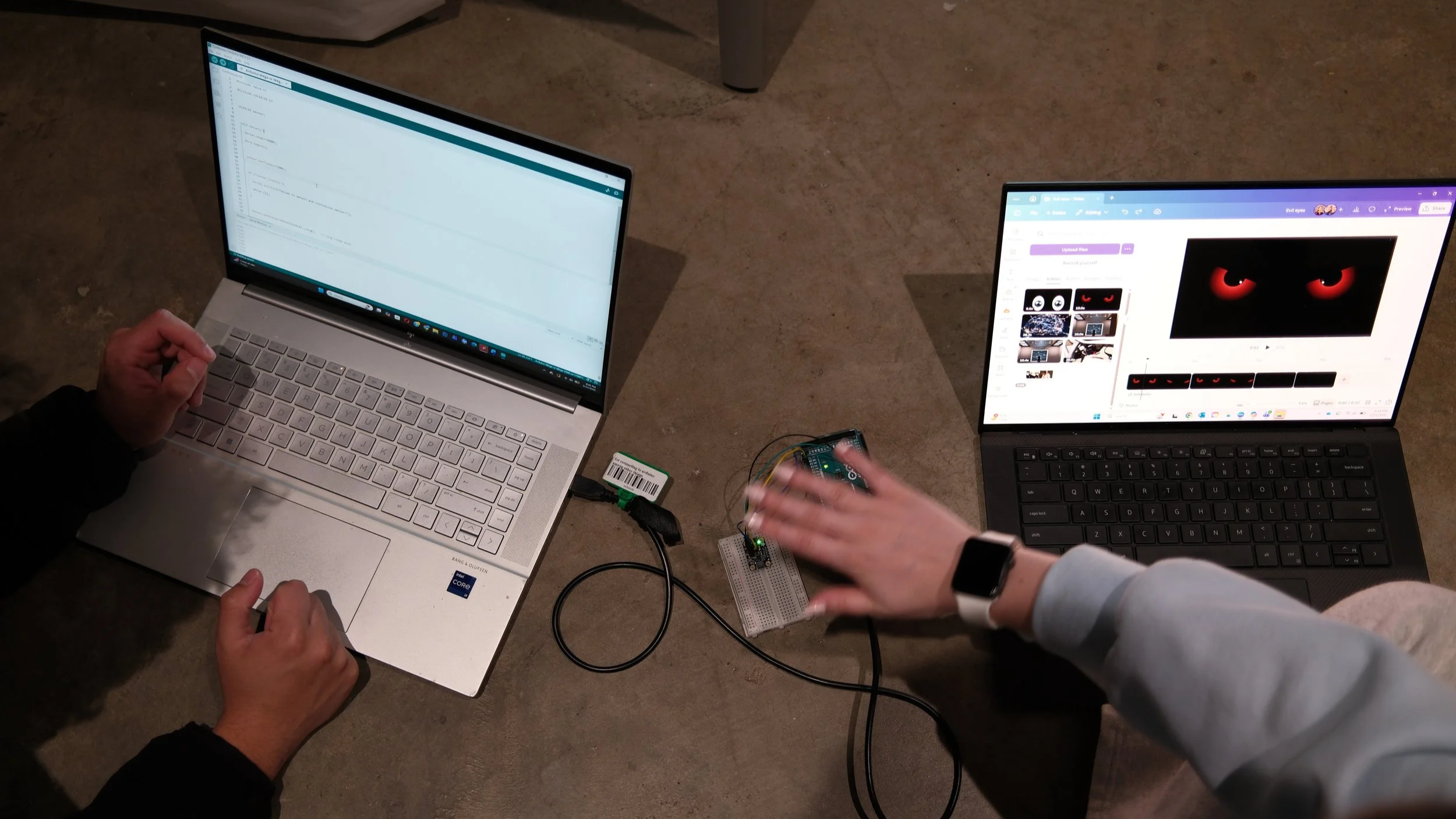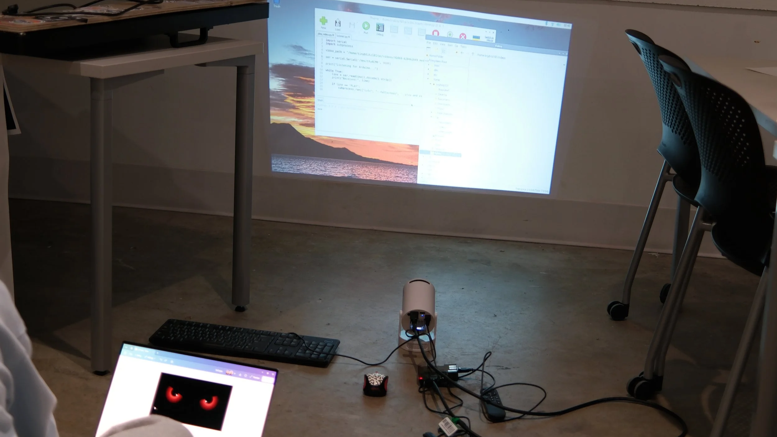 With much troubleshooting, we discovered that the Arduino can send a message over serial to the Raspberry Pi based on the sensor input, where the Raspberry Pi would then play the uploaded video content to the projector.