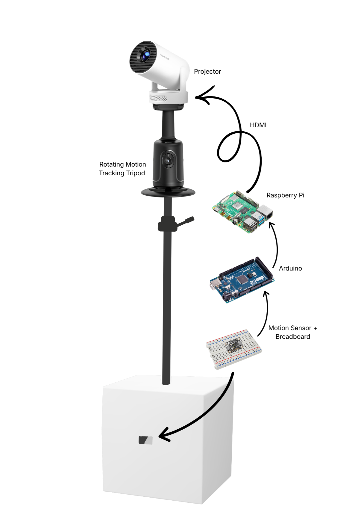 Sensor Input > Arduino > Serial > Raspberry Pi > Video Player > Projector