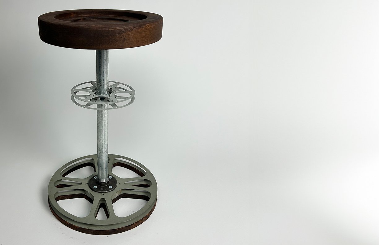 The functional yet artistic stool piece that incorporates a vintage, upcycled element.